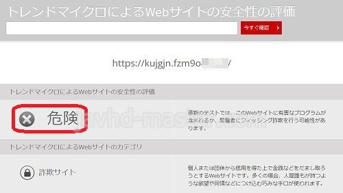 ちなみに、危険なサイトだと以下のように表示されます。三井住友カードのフィッシングサイトのURLです。危険なので、アクセスできないように末尾だけモザイクかけてます↓